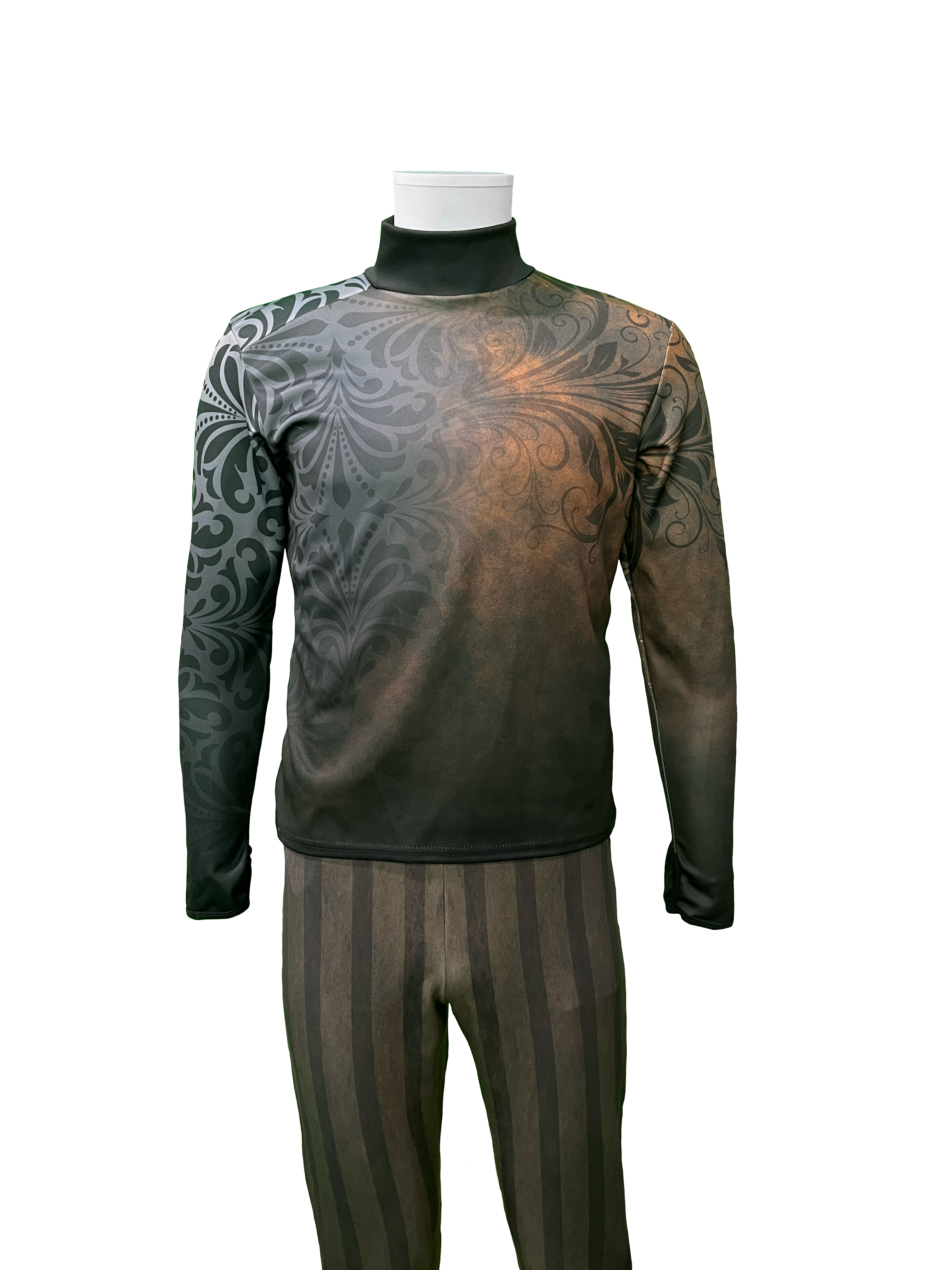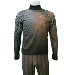 Embrace both comfort and sophistication with this stylish band shirt, designed in rich tones of warm brown and grey. Featuring a striking fleur de lis design, this shirt exudes elegance and classic charm while maintaining a modern flair. The thoughtful details, including thumbholes on the sleeves, provide a secure and snug fit.