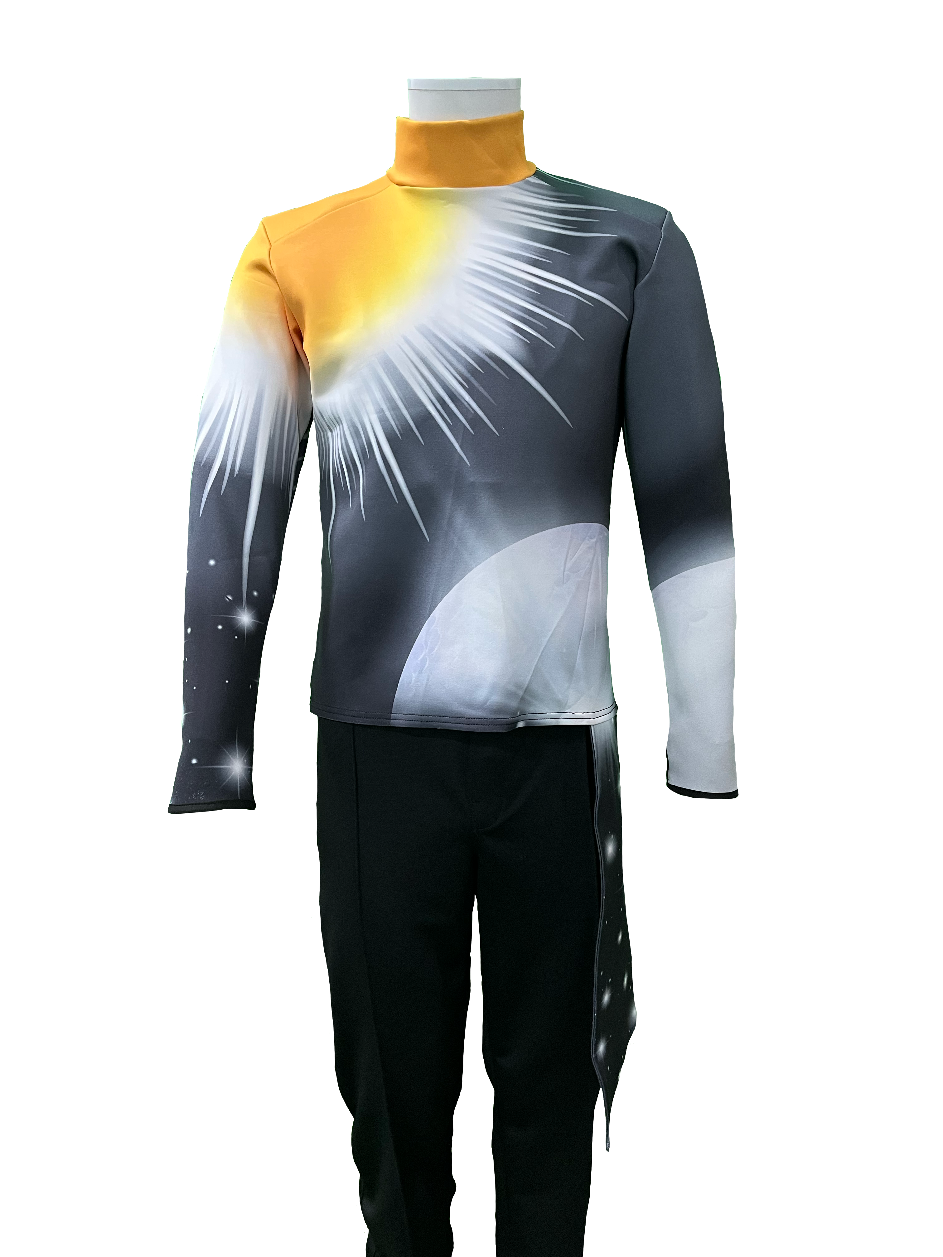 Make a statement with this unique and stylish band shirt, perfect for performers who value both function and flair. Set against a deep grey background, the shirt features an intricate sun and moon design that symbolizes harmony and balance while adding a touch of celestial elegance.