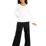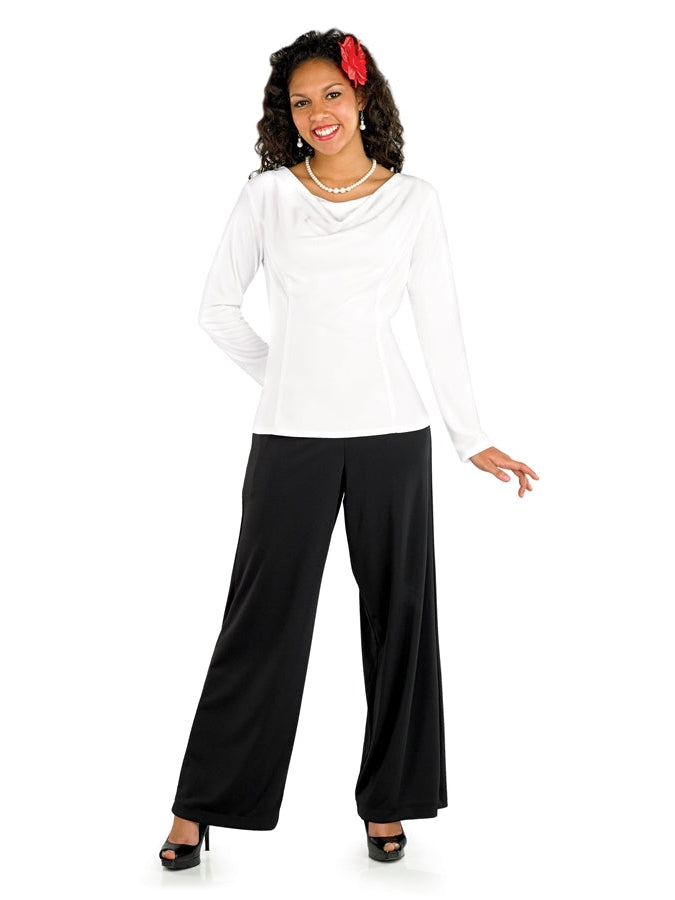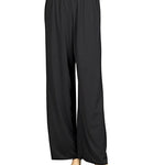 Pull on Palazzo pants with elastic waist. Extra fullness in pant legs for movement. Made in wrinkle resistant, easy care matte jersey stretch knit.