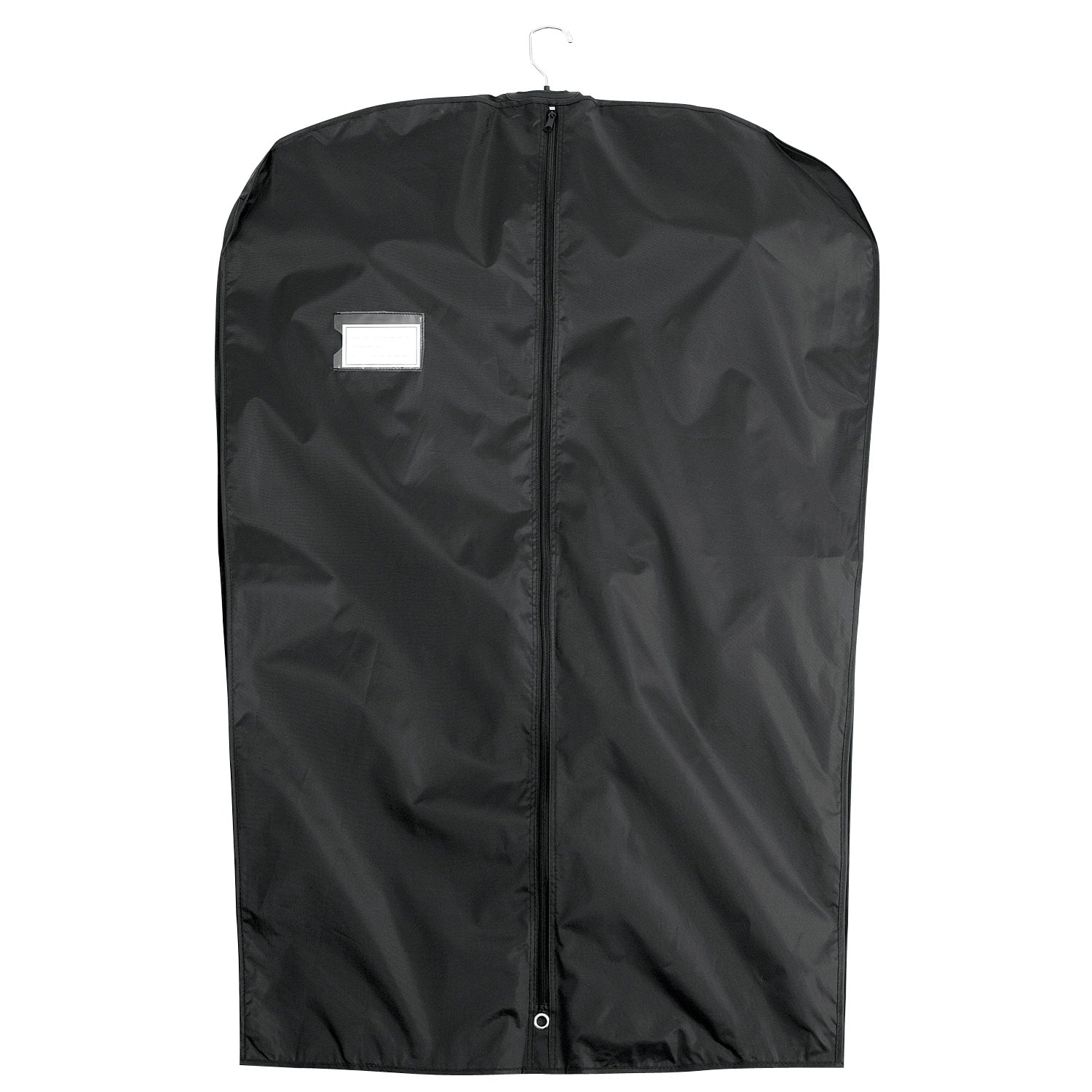 Durable 210 Denier PU coated bag with 3″ gusset around perimeter and ID window. Gusset reinforced around hanger hole. 31″ wide at top of bag, tapering to 25″ wide at bottom. 15″ x 15″ zippered shoe/ accessory pouch on the back. Ventilation holes for breath ability.