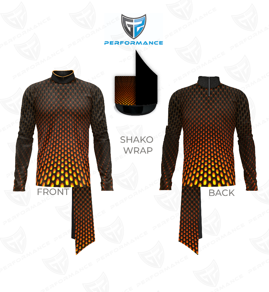 Get your Marching Band Uniform ready with our Quick Ship Uniform - Digital Print Show Tops, Headwear Digital Print Shako Wrap and Digital Print Waistdrop!