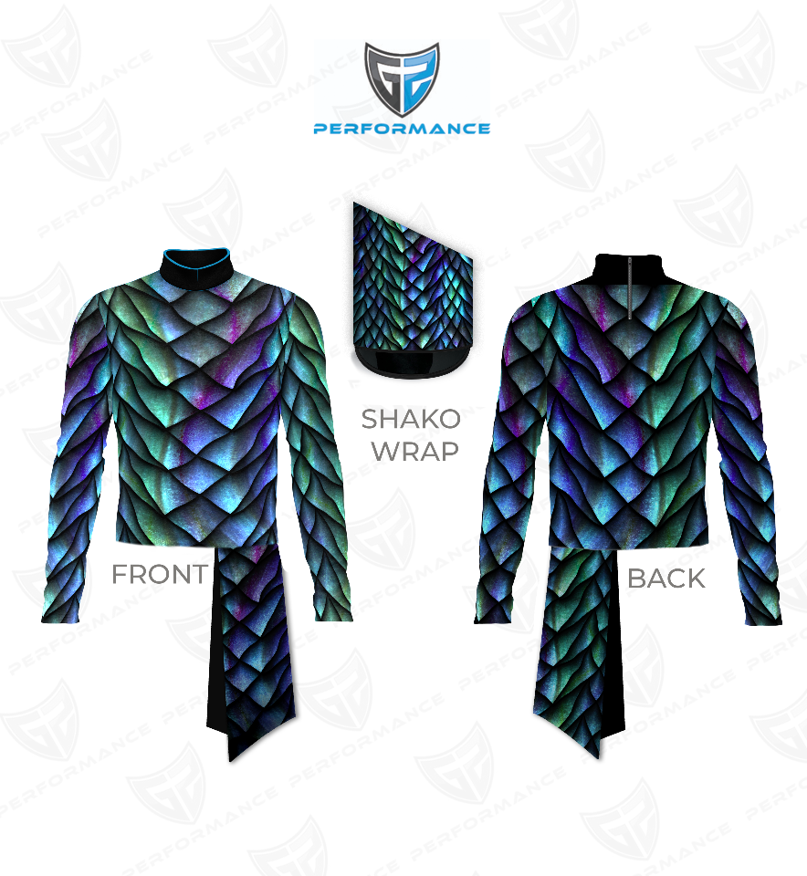 Get your Marching Band Uniform ready with our Quick Ship Uniform - Digital Print Show Tops, Headwear Digital Print Shako Wrap and Digital Print Waistdrop!