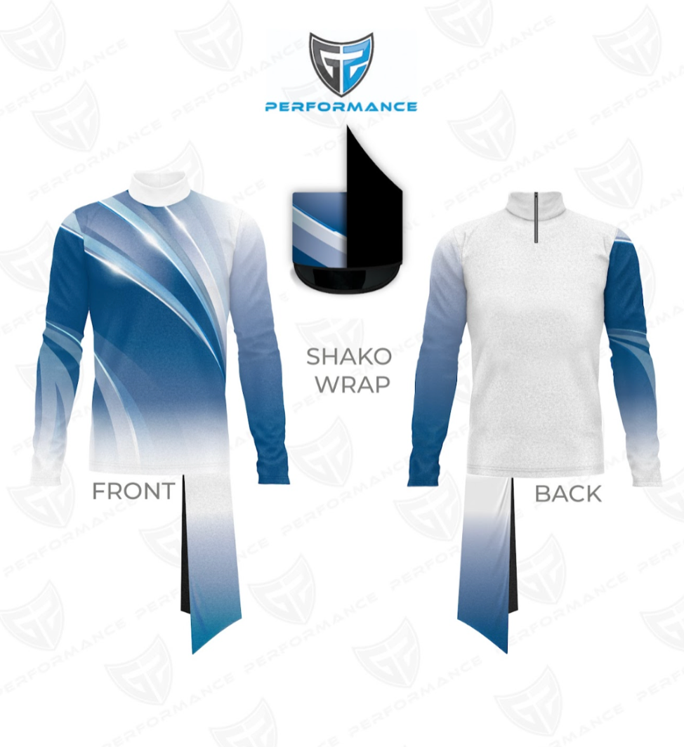 Get your Marching Band Uniform ready with our Quick Ship Uniform - Digital Print Show Tops, Headwear Digital Print Shako Wrap and Digital Print Waistdrop!