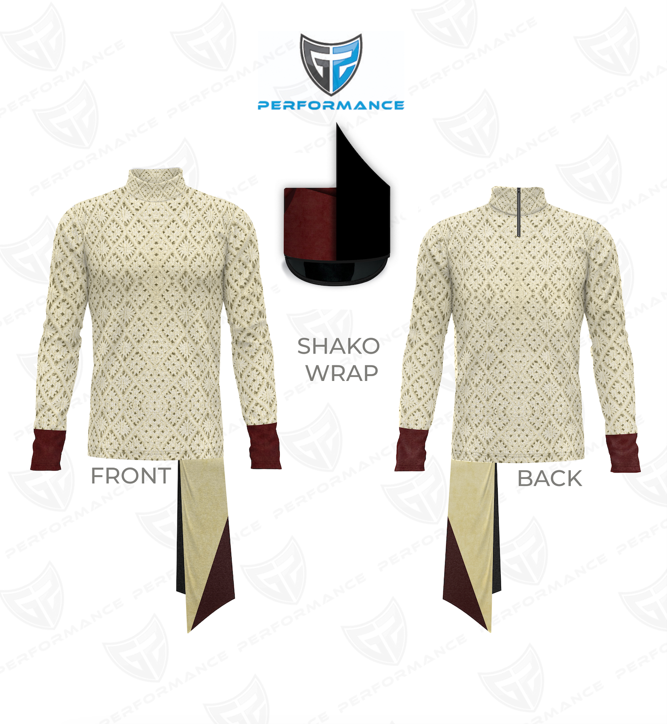 Get your Marching Band Uniform ready with our Quick Ship Uniform - Digital Print Show Tops, Headwear Digital Print Shako Wrap and Digital Print Waistdrop!