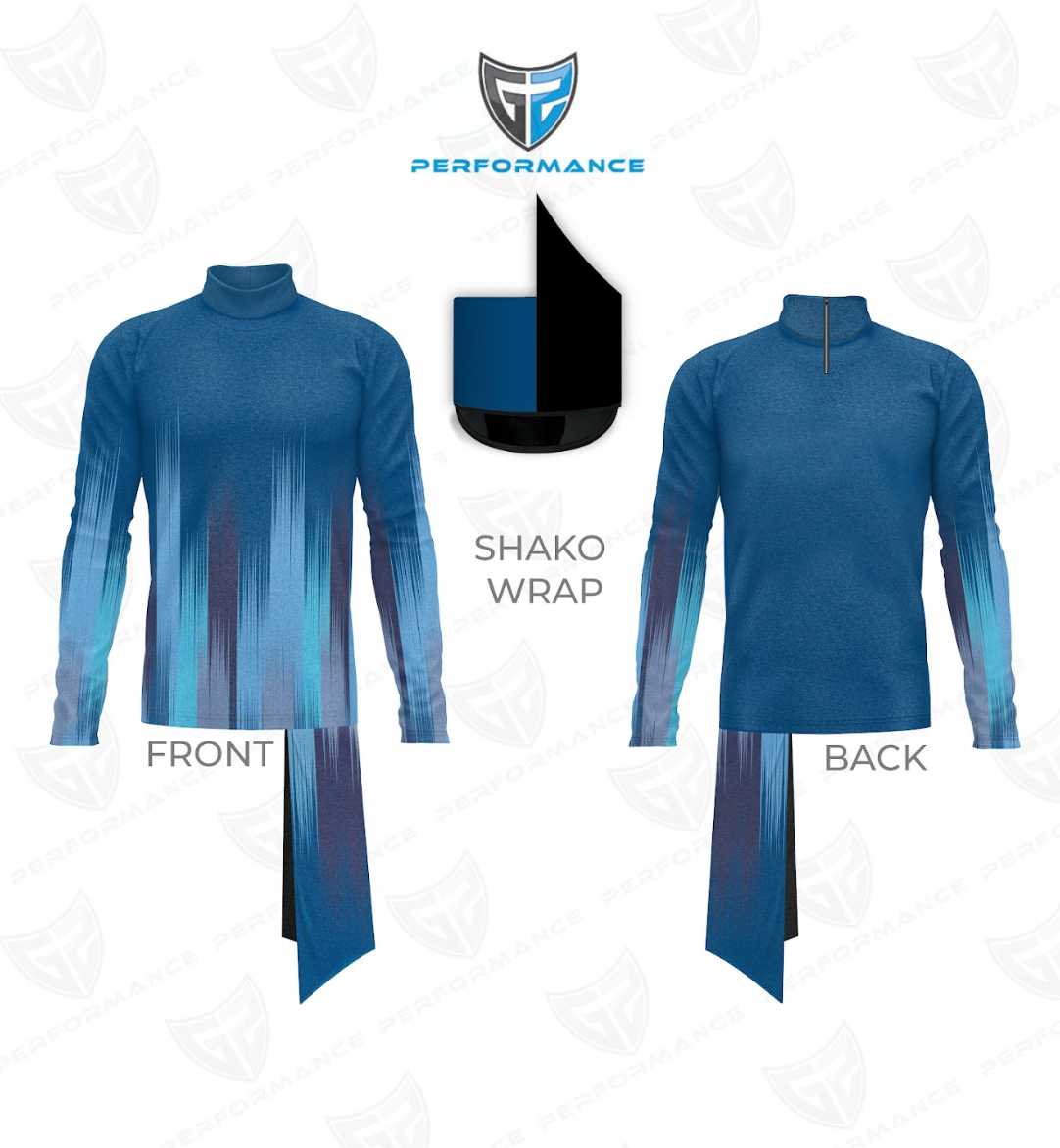 Get your Marching Band Uniform ready with our Quick Ship Uniform - Digital Print Show Tops, Headwear Digital Print Shako Wrap and Digital Print Waistdrop!