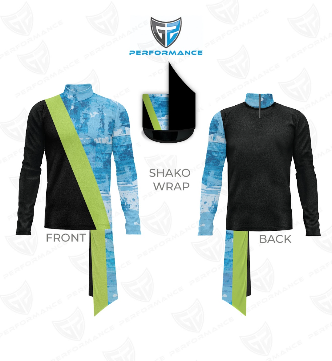 Get your Marching Band Uniform ready with our Quick Ship Uniform - Digital Print Show Tops, Headwear Digital Print Shako Wrap and Digital Print Waistdrop!