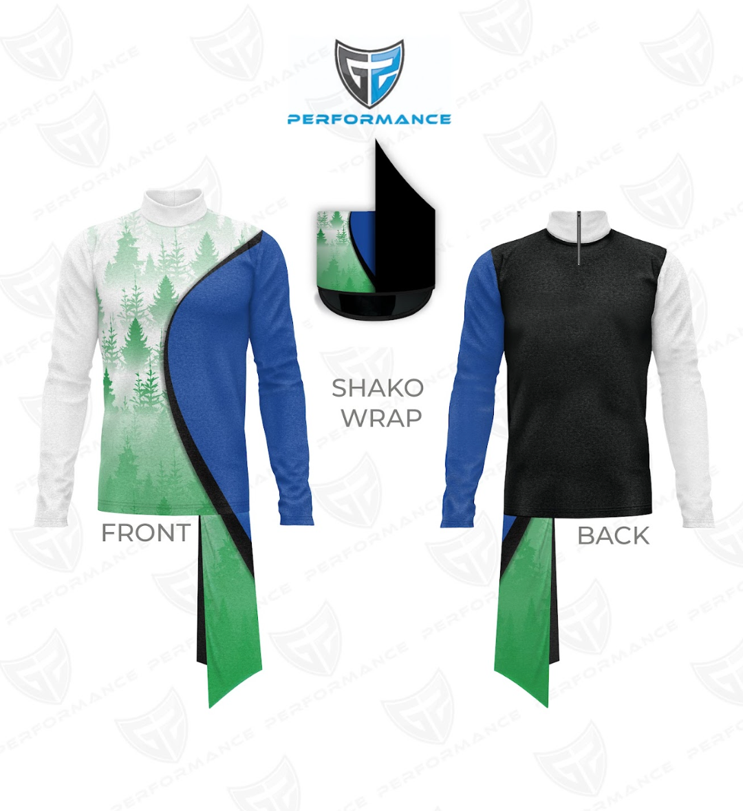 Get your Marching Band Uniform ready with our Quick Ship Uniform - Digital Print Show Tops, Headwear Digital Print Shako Wrap and Digital Print Waistdrop!