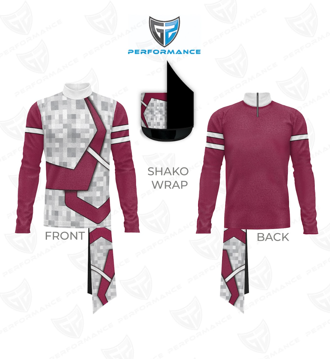 Get your Marching Band Uniform ready with our Quick Ship Uniform - Digital Print Show Tops, Headwear Digital Print Shako Wrap and Digital Print Waistdrop!