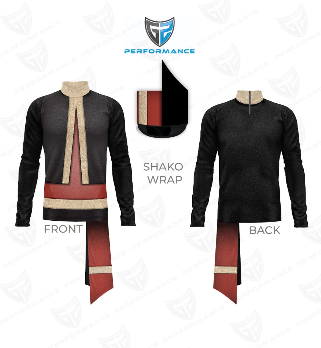 Get your Marching Band Uniform ready with our Quick Ship Uniform - Digital Print Show Tops, Headwear Digital Print Shako Wrap and Digital Print Waistdrop!