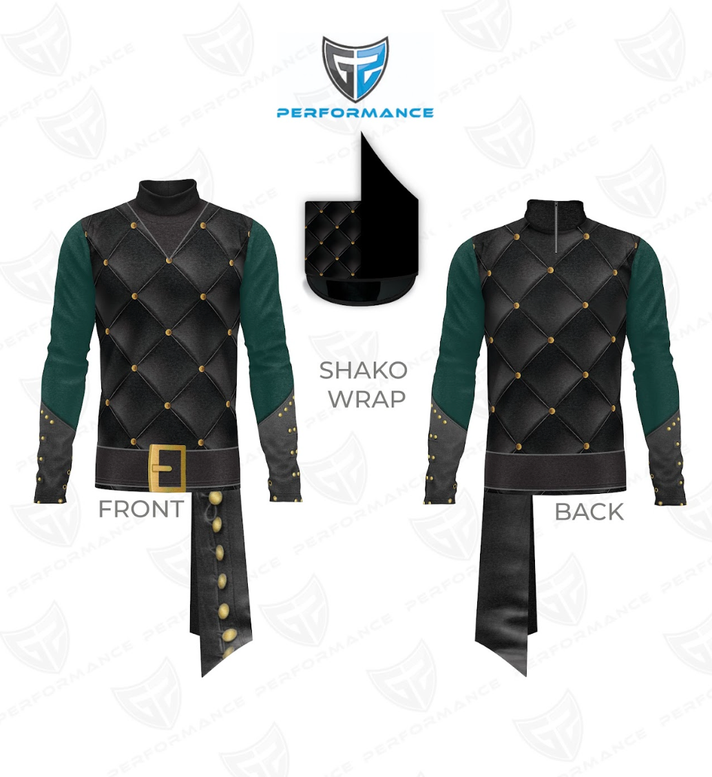 Get your Marching Band Uniform ready with our Quick Ship Uniform - Digital Print Show Tops, Headwear Digital Print Shako Wrap and Digital Print Waistdrop!