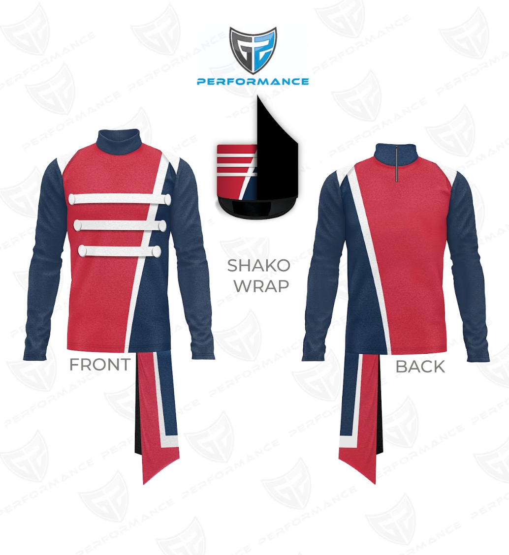 Get your Marching Band Uniform ready with our Quick Ship Uniform - Digital Print Show Tops, Headwear Digital Print Shako Wrap and Digital Print Waistdrop!