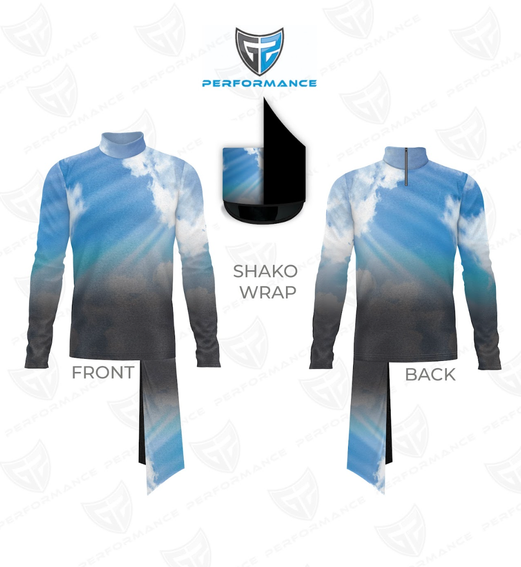 Get your Marching Band Uniform ready with our Quick Ship Uniform - Digital Print Show Tops, Headwear Digital Print Shako Wrap and Digital Print Waistdrop!